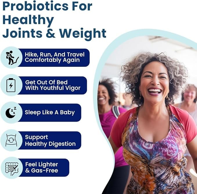 Ideal for women 40 and above, especially those experiencing stiffness or soreness. Turmeric and probiotics help: